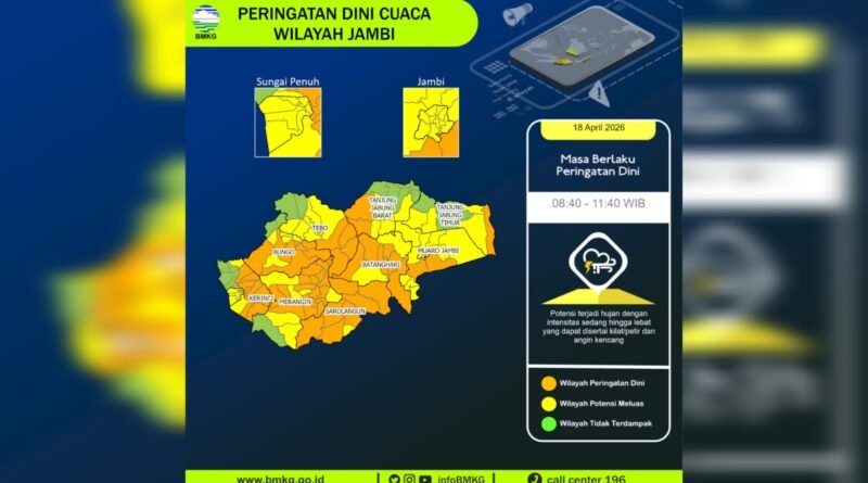 BeritaDaerah Sabtu, 18 April 2026 Redaksi Peringatan Dini Cuaca Jambi Hari Ini: Waspada Hujan Sedang hingga Lebat
