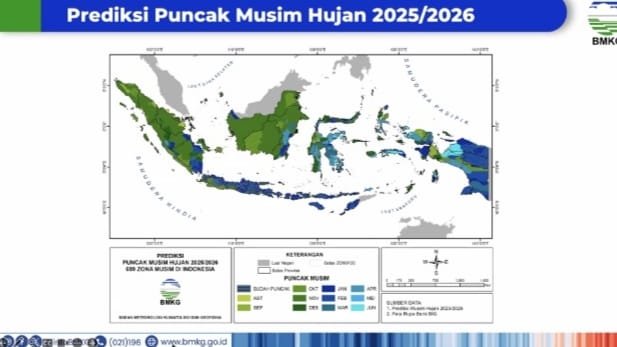 AKSINEWS.COM – Badan Meteorologi, Klimatologi, dan Geofisika (BMKG) mengingatkan semua pihak untuk siaga menghadapi puncak musim hujan yang diperkirakan berlangsung mulai November 2025 hingga Februari 2026.