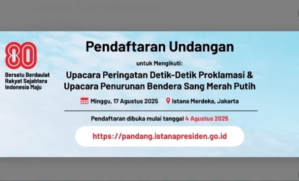 AKSINEWS.COM – Wakil Menteri Sekretaris Negara (Wamensesneg), Juri Ardiantoro, mewakili Menteri Sekretaris Negara, Prasetyo Hadi, menyampaikan kepada masyarakat yang ingin menghadiri upacara detik-detik proklamasi di istana, dapat melakukan pendaftaran online melalui aplikasi “Pandang Istana”, yang akan dibuka pada tanggal 4 Agustus 2025.