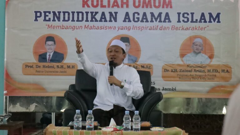 Kuliah umum Pendidikan Agama Islam (PAI) dengan mengangkat tema Membangun Mahasiswa yang Inspiratif dan Berkarakter ini menghadirkan pemateri Dr. KH. Zainul Arifin, M.Ed., M.A, selaku pimpinan dan pengasuh pondok pesantren Darul Arifin Jambi.