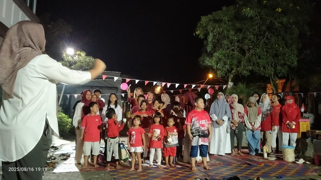 Peringatan HUT RI dimulai dengan menyanyikan lagu kebangsaan Indonesia raya dan dilanjutkan dengan game seru yang diperuntukkan bagi anak-anak.
